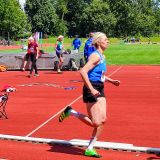 Doch einige LVMV- Top- Masters nahmen diese Herausforderungen an. So die zweimalige Landesmeisterin Jeannette Denz (W50, Greifenpower e.V.) die mit großem Vorsprung und 12,43 m im 3 Kilo- Kugelstoß gewann, ebenso im 1 Kilo- Diskuswurf mit 31,66 m. Auch Nadine Kant (W45, Hagenower SV) steigert kontinuierlich ihre Kugelstoßweite mit dem 4 Kilo- Gerät, mit neuer SB von 12,35 m wurde sie überlegene Landesmeisterin.