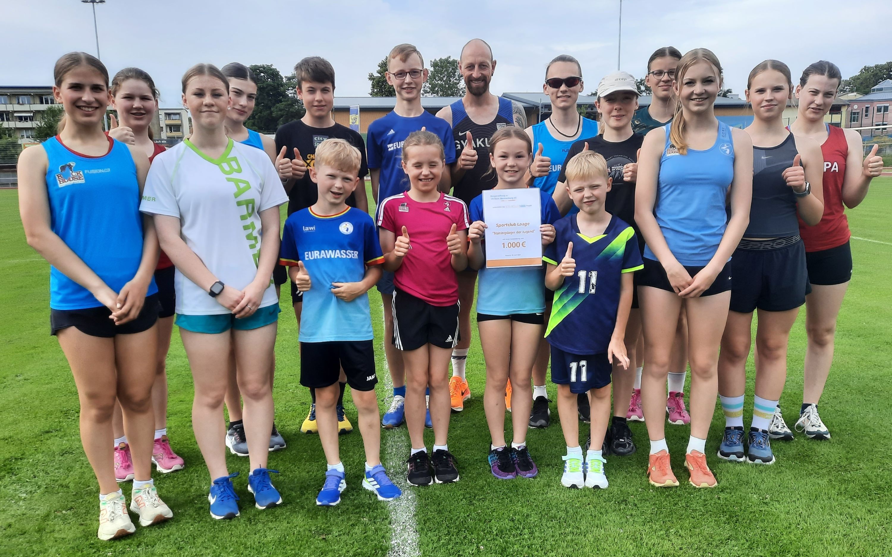 Die Bürgerstiftung der VR Bank Mecklenburg eG unterstützt das Trainingslager der Jugend der Laager Laufgruppe mit einer üppigen Zuwendung und ermöglicht so die Durchführung zusätzlicher Aktivitäten und die Beschaffung von Erinnerungsshirts für die sportliche Woche, die an der Sportschule in Güstrow stattfindet.