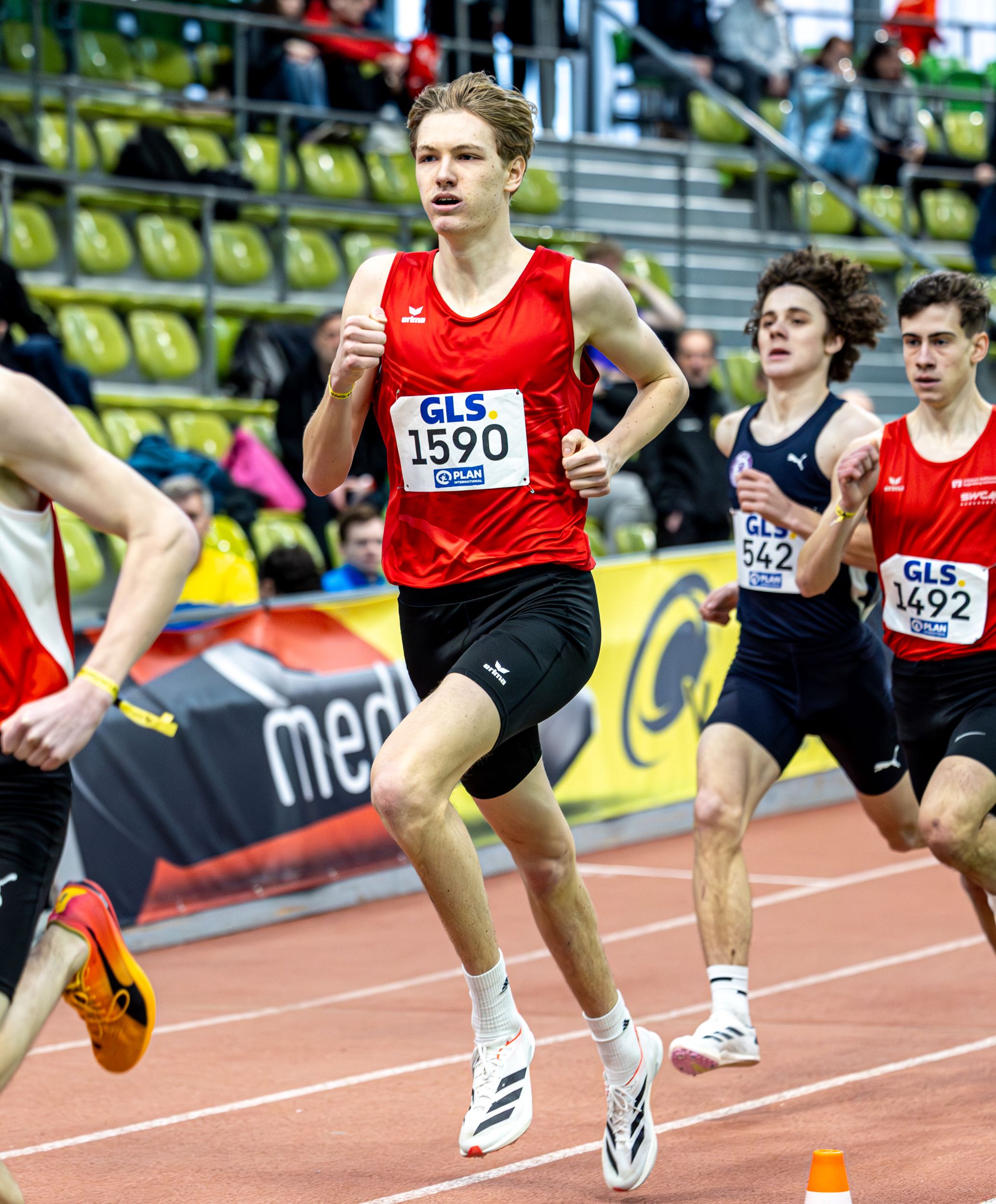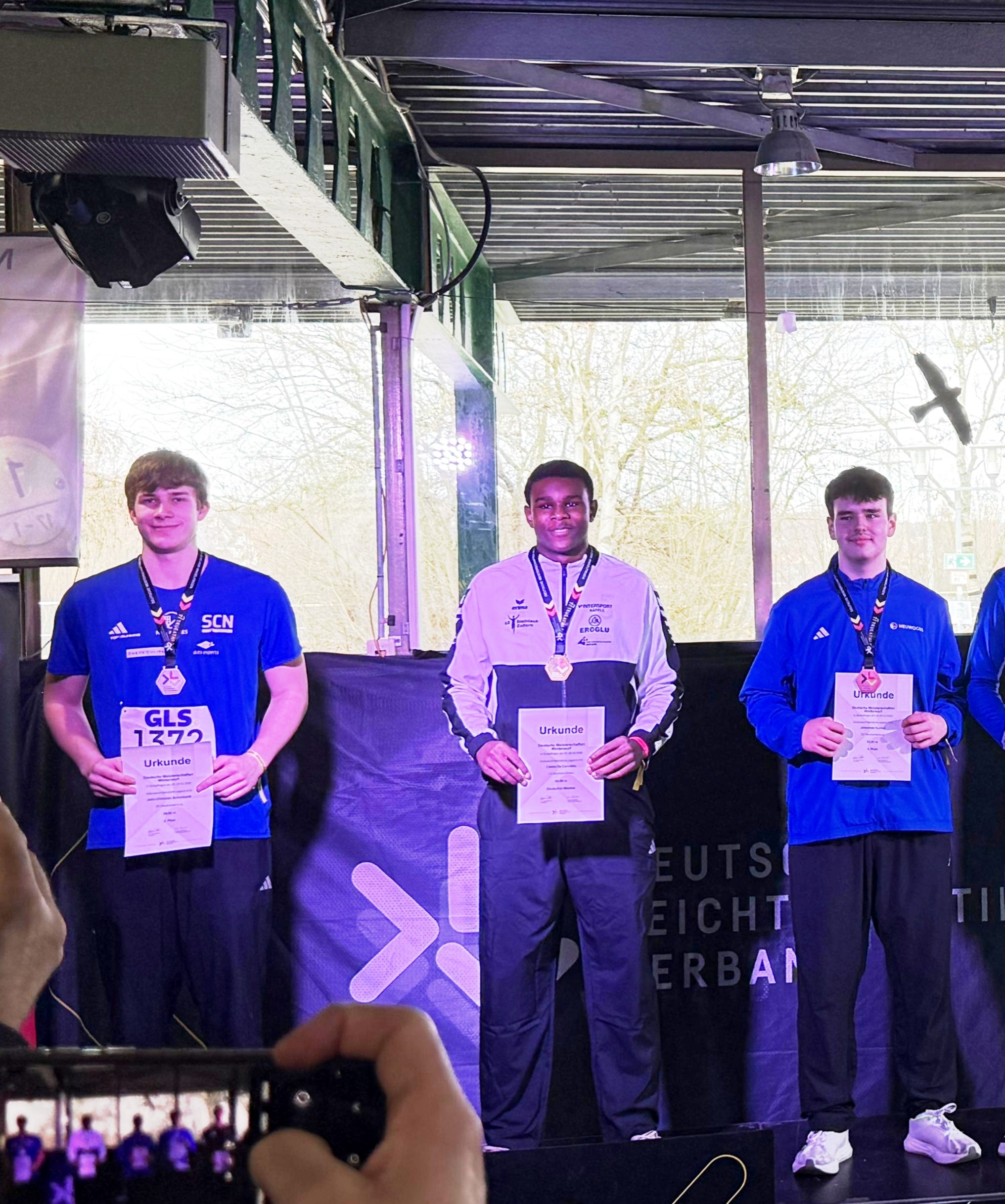Im Weitsprung überzeugte ebenfalls Leoniel Ahiandjipe (Schweriner SC). In der Männlichen Jugend U20 flog er auf die neue Hallenbestweite von 7,22 Meter und durfte sich über Silber freuen. Bei den Winterwurf-Titelkämpfen zeigten die Neubrandenburger Diskuswerfer ihr Potenzial und übertrafen alle ihre persönlichen Bestleistungen. Mit Silber im U18-Wettbewerb für John Schochardt (58,60 Meter), Bronze für Johannes Kunkel (52,92 Meter) und Rang sieben für den noch ein Jahr jüngeren Arvid Ziemann (47,41 Meter) sowie Rang sieben im U20-Wettbewerb für Anton Mündecke (46,30 Meter) gelang ein tolles Gesamtresultat. Nur knapp verpasste Theo Hielscher (TSV 1860 Stralsund) eine Medaille. Im Finale über 800 Meter zeigte er ein couragiertes Rennen und wurde mit Platz vier in 1:55,23 Minuten belohnt.